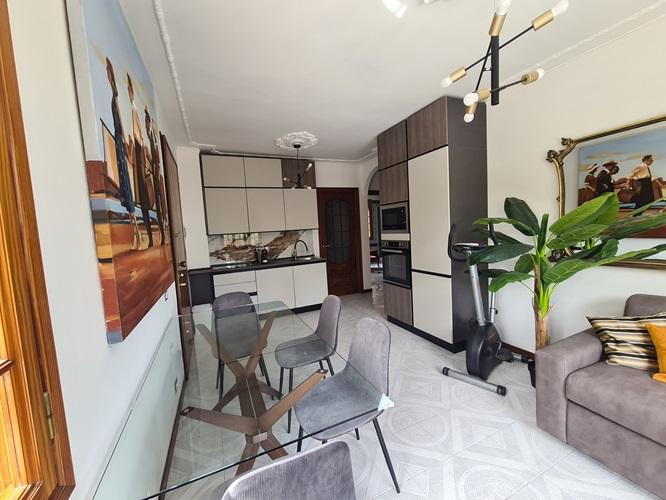 Composto da due camere da letto (una matrimoniale, una con due letti singoli- eventualmente trasformabile in matrimoniale), cucina a vista su sala con divano letto matrimoniale, zona lavanderia/ripostiglio e sala da bagno, per un totale di sei posti letto.
