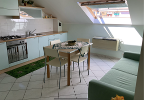 BILOCALE – 5 posti - appena ristrutturato mansardato con aria condizionata / pompa di calore – al 3° piano con ascensore ( senza barriere architettoniche ) - Composto da soggiorno con angolo cottura e divano letto matrimoniale, camera da letto (letto matrimoniale + singolo ) e bagno con doccia e lavatrice.