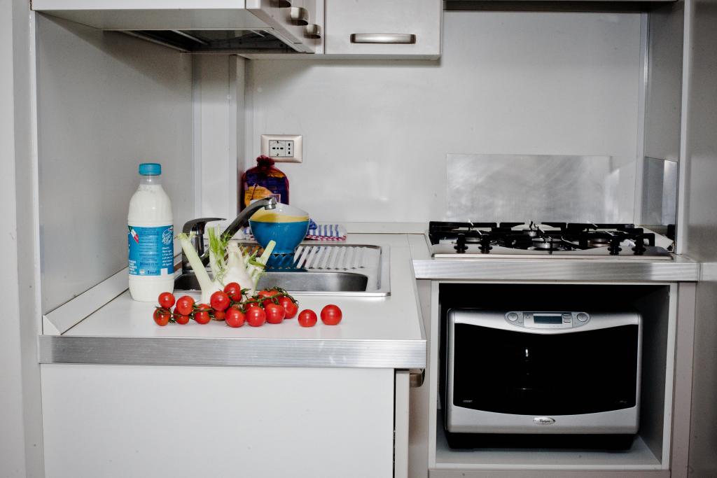 Kitchen in apartment Kitchen, Microwave, Kitchenware, Refrigerator