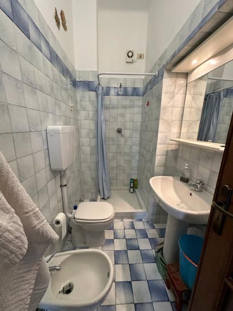 Trilocale con un ingresso al piano terra composto da 2 camere con letto matrimoniale, + 1 poltrona letto, cucina con fornelli a gas, 1 balconata lunga 10 metri e bagno con doccia - lavatrice